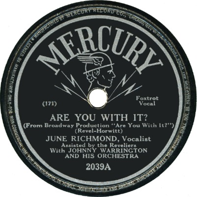 Listen to this week's selection by June Richmond And The Reveliers on Mercury 2039A from 1946: