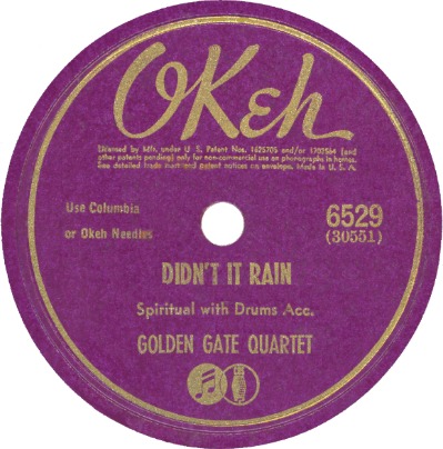 EXTRA AUDIO SELECTIONS (Windows Media Player):Listen to "Didn't It Rain" by The Harmonaires, on Majestic 5007, from 1948.