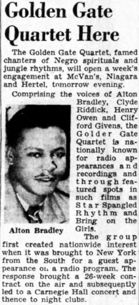 ![]() Columns from (Left) Buffalo Courier Express dated 12/16/45 and (Above) Afro-American dated 4/5/47. |