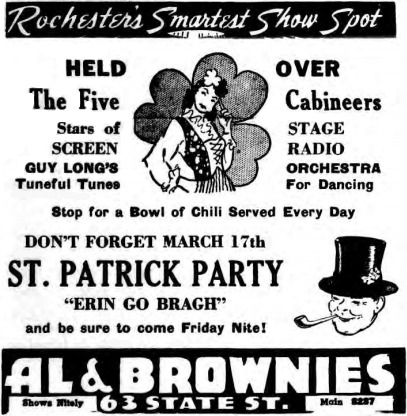 Above: Clipping from the Rochester Daily Record dated 3/16/45 for "The Five Cabineers" appearing at Al & Brownies in Rochester, NY. Any appearance by The Cabineers on "screen" could not be found or verified. They did have their own radio shows on WINS and WOR, both in NYC, in the early 1940s.