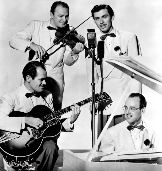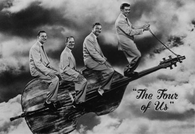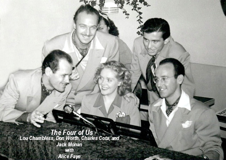 Above: The Four Of Us from 1945, consisting of (L-R) Lou Chambliss, Don Worth, Charles Cota, and Jack Monan. In the center is Alice Faye.