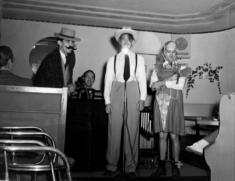 Above: The Four Of Us (L-R) Charles Cota, Don Worth, Lou Chambliss, and Jack Monan. Playing the piano is John Garfield.