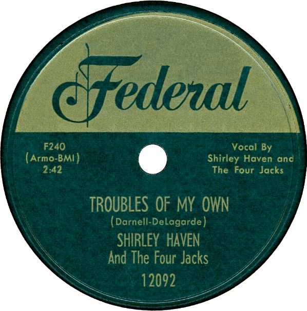 Listen to this week's selections featuring Shirley Haven And The Four Jacks on Federal 12092 from 1952 using Windows Media Player: