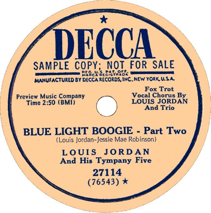 LOUIS JORDAN AND HIS TYMPANY FIVE DECCA 27114.... Blue Light Boogie II/Blue Light Boogie I
