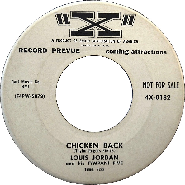 "Chicken Back" - Louis Jordan And His Tympani Five - "X" 0182 - 1955.![]()