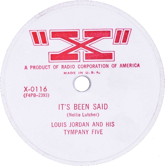 Above: "X" Records advertisement from The Cash Box dated 11/26/55. Louis Jordan And His Tympany Five had four records on RCA Victor's "X" label (1955-1956). At Right: 45 RPM label image of "X" 0182, released in 1955. Note the spelling of "Tympani", rather than Jordan's usual "Tympany".