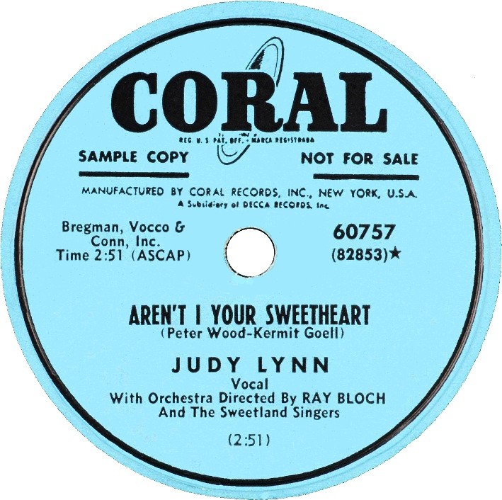 2. Aren't I Your Sweetheart - Judy Lynn And The Sweetland Singers - Coral 60757 - 1952