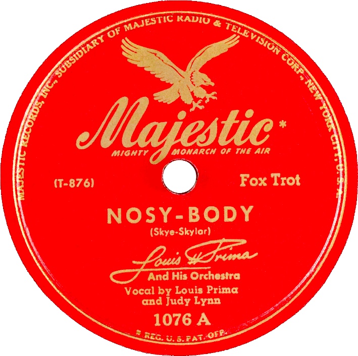 LOUIS PRIMA Majestic 1076....Nosy-Body with vocal by Louis Prima and Judy Lynn.