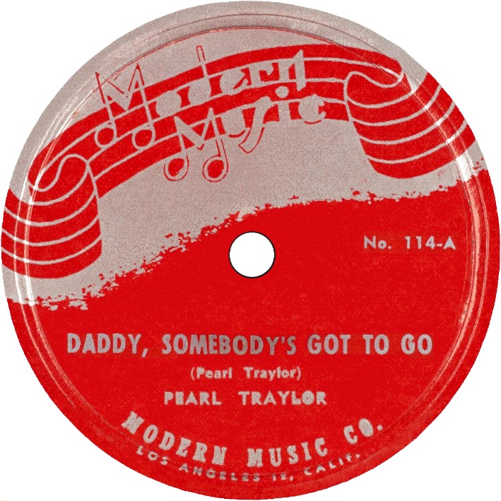 Above Left: Label image of Modern Music 114-B, recorded and released in 1945. This side is an instrumental. The flip side of this record is by Pearl Traylor and is included further down this page under her name. The Modern Music label numbering system started with No. 101. Above Right: Label image of Modern Music 150A, recorded in 1946 and released in 1947. This side has Hadda Brooks both vocalizing and playing the piano. The composer credits on the label are for a different "Romance In The Dark" song.