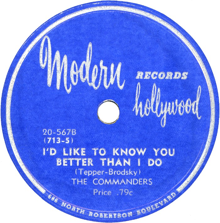 2. "I'd Like To Know You Better Than I Do" - The Commanders - Modern 20-567B - 1948.BOTH SONGS played in sequence.