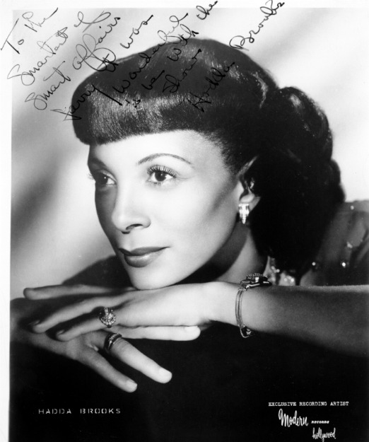 Above: Photo of Hadda Brooks, exclusive recording artist for Modern Records Hollywood.