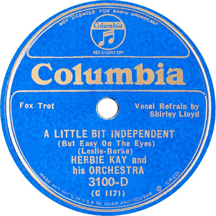 1. "A Little Bit Independent" - Herbie Kay Orchestra, Vocal By Shirley Lloyd - Columbia 3100-D - 1935.