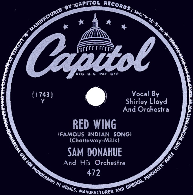 2. "Red Wing" - Sam Donahue Orchestra, Vocal By Shirley Lloyd And Orchestra - Capitol 472 - 1947.BOTH SONGS played in sequence.