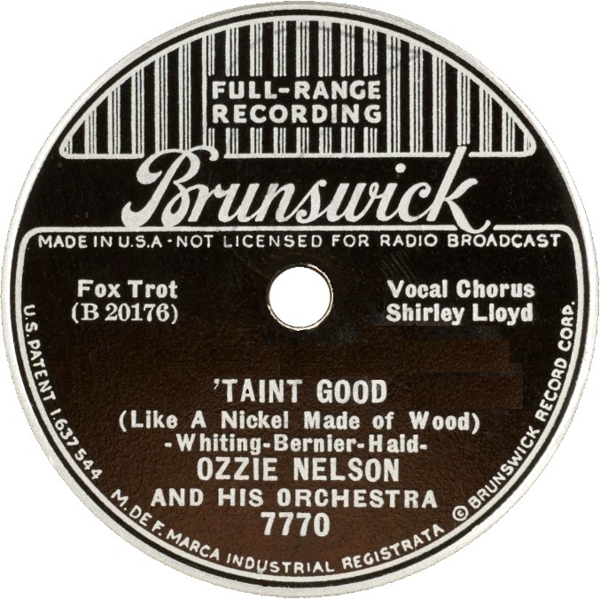 1. "'Taint Good" - Ozzie Nelson Orchestra, Vocal By Shirley Lloyd - Brunswick 7770 - 1936.
