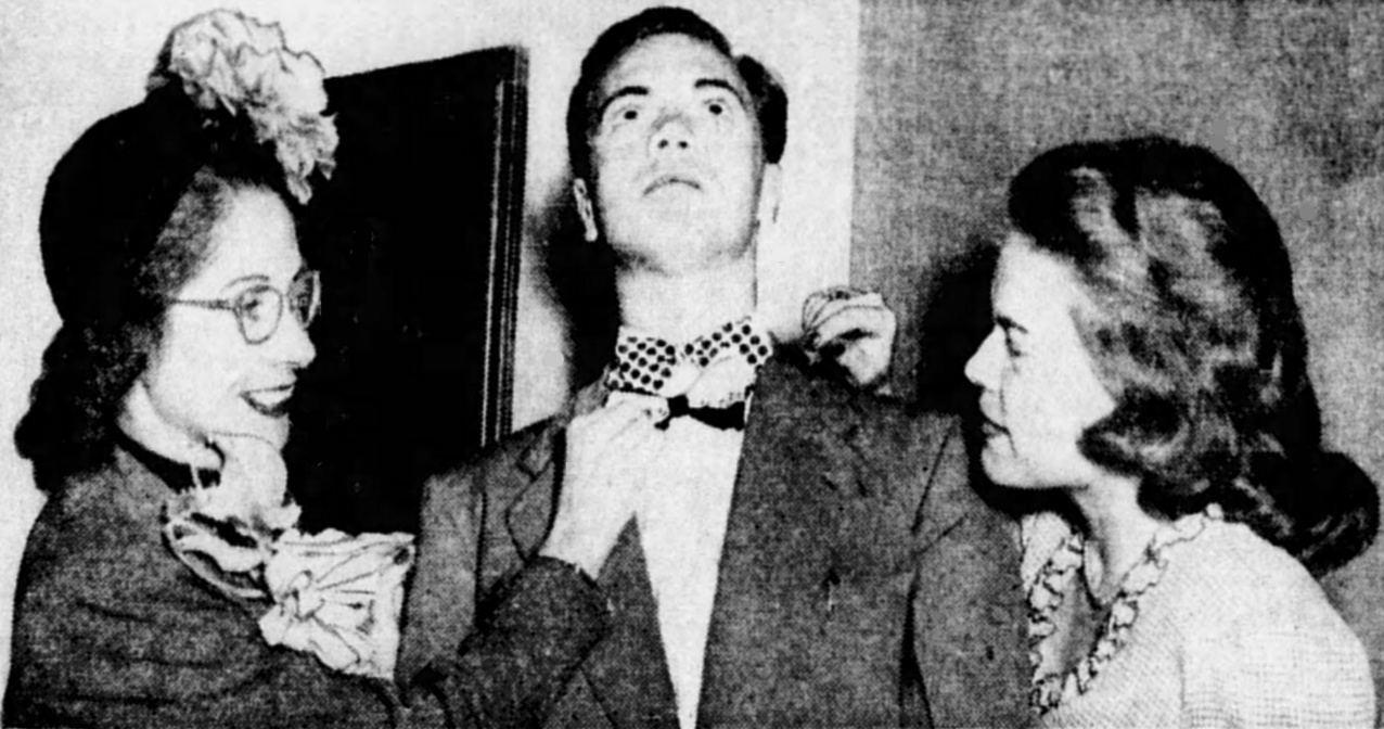 Alan Freed, WAKR staff announcer, discovered that a man's tie, bowed or otherwise, must have that certain touch for a luncheon date with Miss Nancy Pepper, authority on teen-age styles, and Miss Jane Amer, "Younger Set" columnist in the Beacon Journal. Fortunately, Alan had a choice of two ties to offer his companions...a green and a white polka dot and one of the half yellow, half brown variety with musical notes in between.Miss Pepper arrived in Akron Thursday evening to give comments in a preview showing of fall fashions for high school girls. With Miss Amer, she compared notes on obtaining the latest news of teen-agers. From Alan Freed, Miss Pepper obtained many tips on what high school students considered tops in records, the proper chatter for platter shows, and many other bits which will be included in her teen-age column.
