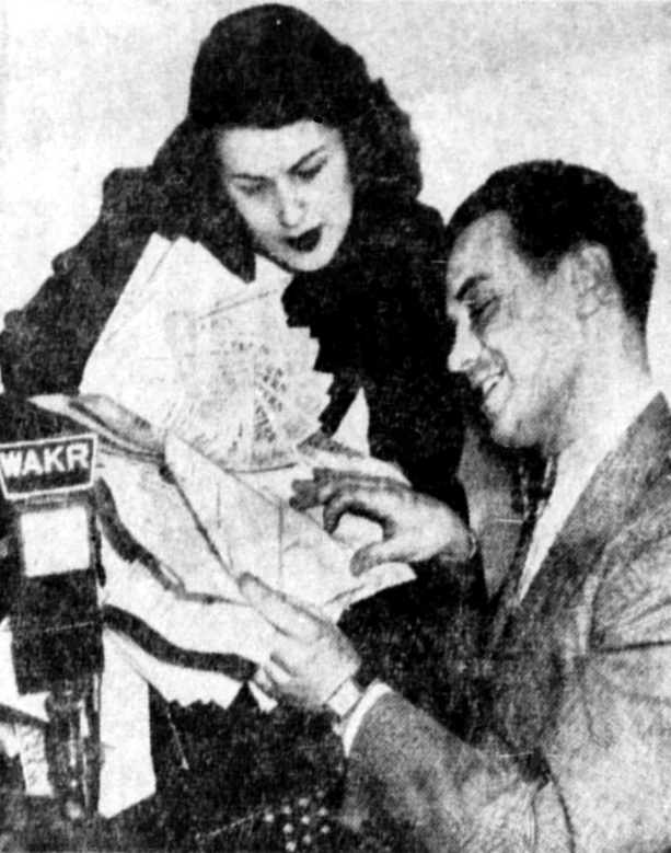 "Anything can happen on a request program", Freed says, and usually does. The receptionist at WAKR can attest to the number of phone calls that arrive during the course of one broadcast. One such caused them both to smile. A well-meaning mother was having trouble getting her baby to sleep, so she called WAKR to have Alan sing a lullaby. Result! Freed did, but the baby didn't.