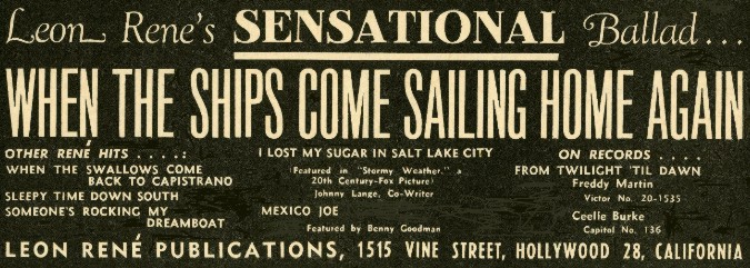 Above: Publisher clipping from Billboard Music Yearbook 1943. Leon's brother, Otis, has co-composer credit on some of the songs listed. Leon also composed "Boogie Woogie Santa Claus" and, with Otis, co-wrote "Sweet Lucy Brown" and "I Sold My Heart To The Junk Man".