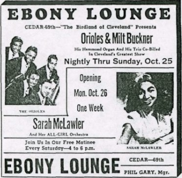 Above: Clipping of Sarah McLawler "And Her ALL-GIRL Orchestra" from 1953.