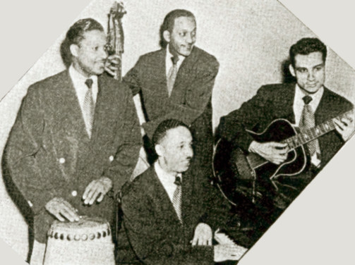 Above: Clarence Jackson And The 4 Notes Of Rhythm at the Hi Hat Lounge in Boston in 1949. In photo, Clarence Jackson (lead vocal/drums), George Jones (bass), Kurt Treveigne (guitar), Highland Diggs (piano).